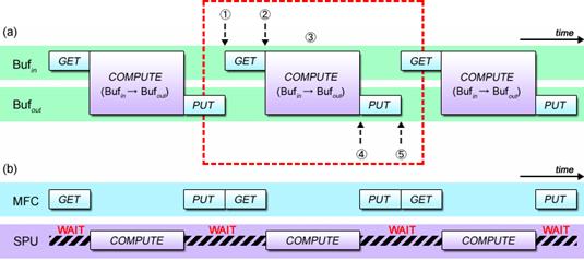 While DMA transfer allows transfer of up to 16K bytes of data between the main memory and each SPE’s LS, mailboxes are designed for transfer of 32-bit data between the PPE and the SPE.